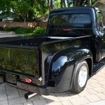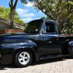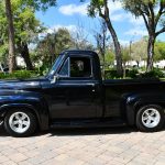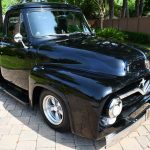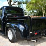 The 1955 Ford F100, a timeless emblem of American automotive heritage, brings together power, style, and meticulous restoration to create a masterpiece that stands as a tribute to an era of innovation and craftsmanship. With its unique attributes and meticulous attention to detail, this classic truck is a testament to a time when vehicles were more than machines—they were works of art. Beneath the hood, the 1955 F100 houses a robust 5.7-liter (350 cubic-inch) V8 engine that personifies the truck’s dual identity as a powerhouse and a versatile workhorse. The 350c.i. V8 engine embodies the F100’s commitment to both high-performance capabilities and utilitarian functionality. It delivers an impressive blend of torque and horsepower, offering both thrilling acceleration and the capacity to take on a multitude of tasks. Partnered with the engine is a Turbo 400 automatic transmission, thoughtfully chosen to enhance the driving experience and complement the V8’s prowess. The Turbo 400 transmission enhances gear shifts, ensuring seamless transitions and a refined ride. Whether embarking on a leisurely drive or navigating through urban environments, the F100 delivers an exceptional balance of power and comfort. The exterior of the 1955 Ford F100 commands attention with its striking black finish adorned by custom flames. These artistic flames, meticulously handcrafted, transform the truck into a moving canvas, embodying the spirit of personalization that was celebrated in this era. The custom flames add a touch of sophistication to the classic design, infusing the truck with a unique personality that captures the essence of individual expression. As you step inside, the black interior envelopes you in an atmosphere that marries practicality with a touch of elegance. The black color scheme extends seamlessly from the seats to the dashboard, creating an interior that caters to the driver’s experience. The meticulous attention to detail throughout the cabin reflects the dedication to restoration and craftsmanship, resulting in an interior that resonates with both authenticity and sophistication. Boasting a mere 75 miles on the odometer, this F100 proudly showcases its meticulous restoration and limited usage. The incredibly low mileage stands as a testament to the care and reverence invested in preserving its original charm. The 1955 Ford F100 embodies an era when vehicles were more than mere transportation; they were symbols of innovation and individuality. Its 5.7L V8 engine, Turbo 400 transmission, black exterior with custom flames, and black interior, all meticulously restored, encapsulate a time when automotive design was an art form. As you grasp the steering wheel and experience the authority of the V8, you’re not just driving; you’re immersing yourself in the history of a classic truck that’s been revitalized to inspire admiration and reverence for generations to come.