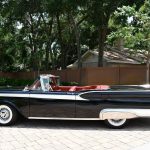 The 1959 Ford Fairlane 500 Retractable is a stunning classic car that embodies the timeless elegance and power of its era. With its sleek lines, supreme craftsmanship, and impressive performance, this vehicle is a true masterpiece of automotive design. Under the hood, the 352 cubic inch V8 engine roars to life, delivering a thrilling driving experience that effortlessly combines power and sophistication. This powerhouse of an engine ensures a smooth and exhilarating ride, making every journey behind the wheel an unforgettable adventure. The automatic transmission adds to the convenience and ease of driving this vintage beauty. Whether cruising along the open road or maneuvering through city streets, the transmission seamlessly shifts gears, providing a seamless and enjoyable driving experience. The odometer reading of 49,550 demonstrates the loving care and attention this car has received over the years. It is a testament to the impeccable maintenance and preservation, ensuring that this classic car remains in pristine condition for years to come. The exterior of the 1959 Ford Fairlane 500 Retractable is finished in a timeless black, exuding an air of sophistication and class. The deep black paintwork gleams under the sunlight, accentuating the smooth lines and distinctive curves of this vintage beauty. Heads will turn as you drive by, attracting admiration from all who witness this exceptional classic car. The interior of this Fairlane 500 Retractable is a striking red, creating a bold and luxurious atmosphere. The red upholstery and accents perfectly complement the black exterior, creating a visually stunning contrast. The attention to detail and craftsmanship in the interior design reflect the elegance and prestige associated with classic cars from this era. Owning a 1959 Ford Fairlane 500 Retractable is not just about owning a car; it is about possessing a piece of automotive history. This classic car represents an iconic era, where cars were built with passion, style, and an unwavering commitment to excellence. Driving this vintage beauty is like stepping back in time, capturing the essence of a bygone era while enjoying the modern comforts it provides. Whether you are a collector, an enthusiast, or simply someone who appreciates the artistry and craftsmanship of classic cars, the 1959 Ford Fairlane 500 Retractable is a car that will undoubtedly captivate your heart and soul. Its combination of power, elegance, and timeless design make it a true automotive masterpiece that stands the test of time.