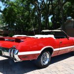 The 1970 Oldsmobile Cutlass Convertible, a symbol of timeless American motoring, embodies the fusion of power, elegance, and open-air freedom. With its impressive specifications and captivating aesthetics, this classic car captures the essence of an era where driving was an experience filled with both exhilaration and style. Beneath the hood rests the powerhouse that defines the Cutlass Convertible—a commanding 7.5-liter (455 cubic-inch) V8 engine. This engine, renowned for its robust torque and formidable output, epitomizes the muscle car ethos of the time. The 455c.i. V8 engine not only roars with authority but also delivers performance that translates into thrilling acceleration and an unforgettable driving experience. Complementing the engine is an automatic 3-speed transmission, designed to seamlessly harness the engine’s power and translate it into a smooth yet dynamic driving engagement. This combination offers both ease of operation and the unmistakable sensation of power at your command, whether cruising leisurely or commanding the road with gusto. The exterior of the 1970 Oldsmobile Cutlass Convertible presents an arresting Red/White color scheme, capturing attention and reflecting the vibrant spirit of the era. The vivid red hue interplays with the pristine white accents to create a visual harmony that’s hard to overlook. The convertible soft top adds an extra layer of allure, allowing you to embrace the thrill of the open road at your leisure. Step inside, and you’re greeted by an interior adorned in elegant white. The inviting ambiance is a testament to the era’s focus on driver and passenger comfort. The carefully designed layout features supportive seats and a dashboard showcasing a blend of form and functionality. The combination of quality materials and well-thought-out design elements speaks to the attention to detail that defined this era of automotive craftsmanship. With just 47,653 miles on the odometer, this Cutlass Convertible stands as a testament to its preservation and limited usage. The relatively low mileage underscores its significance as a classic gem that has been cherished throughout its journey. The 1970 Oldsmobile Cutlass Convertible with its soft top captures the essence of carefree driving and exhilaration. It represents more than just a car; it’s an embodiment of an era characterized by the pursuit of the open road and the freedom to do so with flair. As you take hold of the wheel and experience the rush of wind through your hair, you’re not just driving; you’re reliving a chapter of automotive history that melds performance, elegance, and the joy of a top-down adventure.